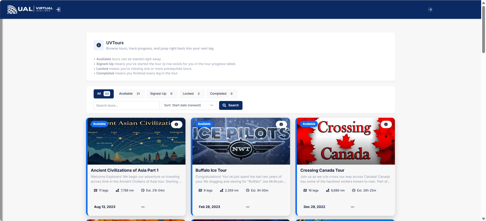 A tour is a multi-leg flight experience designed around a specific theme, region, aircraft type, or operational objective.